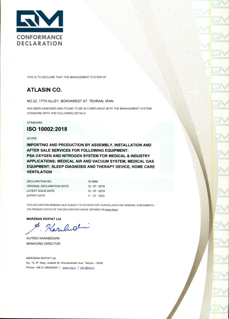 پیادهسازی سیستم مدیریت رضایتمندی مشتریان ISO10002 و کیفیت تجهیزات پزشکی ISO13485 از شرکت DQS آلمان.