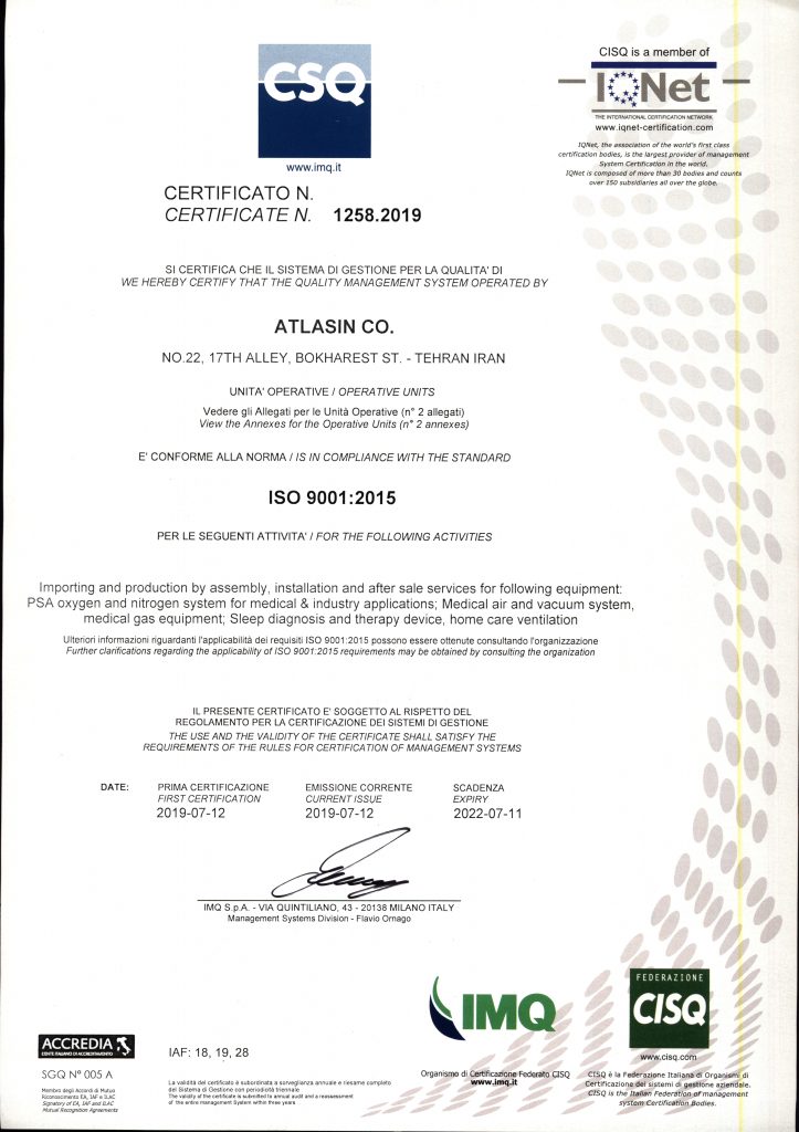 شرکت اطلسین افتخار دارد که تکنولوژی تولید اکسیژن به روش PSA را برای اولین بار در ایران معرفی کرده و در همان سال، اولین دستگاه مولد اکسیژن با ظرفیت ۱۲۰ متر مکعب در ساعت را نصب و راهاندازی نموده است.