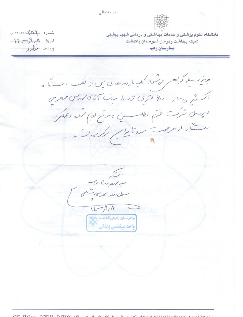 ارائه خدمات پس از فروش و پشتیبانی فنی به بیش از 600 بیمارستان و مرکز درمانی در سراسر کشور.